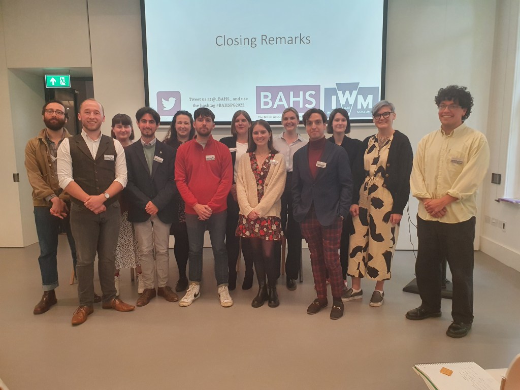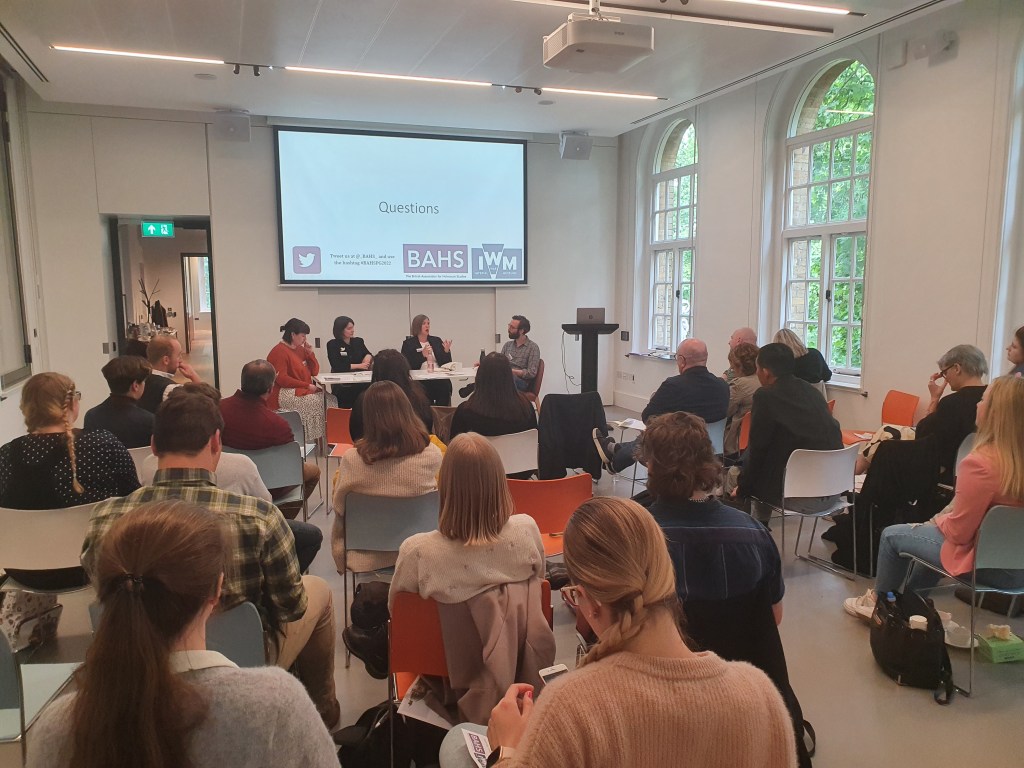 On Monday 30th May 2022, we welcomed 40 postgraduate researchers, educators, and academics to the Taube Family Learning Centre at the Imperial War Museum London for the BAHS Postgraduate conference 2022. Each year, the conference brings together a range of academics from across the UK and abroad with a wide range of expertise and interests. This year’s conference was no exception, providing an opportunity to expand the academic opportunities and resources available to postgraduates in our network. In the day-long conference, we heard a keynote from Professor Dan Stone, 11 papers featuring cutting-edge research from postgraduates from across the world, and took part in a tour of the new Holocaust galleries at the IWM.