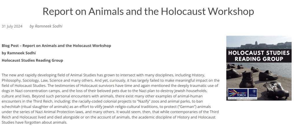 Animals and the Holocaust, Magdalen College, University of Oxford, 11-12 July 2024